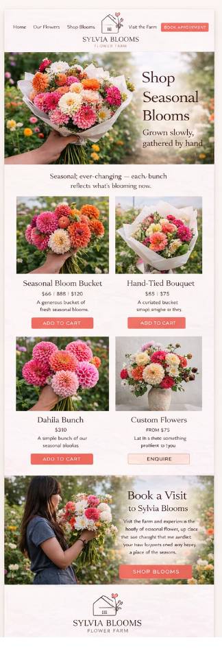 Sylvia Blooms is a small flower farm rooted in seasonality and intention, one changed by the seasons.